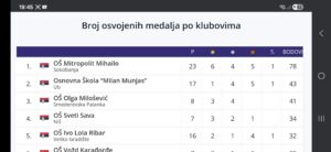 Prvo mesto osvojili su džudisti-učenici Osnovne škole „Mitropolit Mihailo“ na Regionalnom školskom prvenstvu. Ukupno 15 medalja, 6 zlatnih, 4 srebrnih i 5 bronzanih, dovelo je do ovog zlatnog plasmana i to sa velikom razlikom u brojkama u odnosu na drugoplasiranu školu na listi Džudo saveza Srbije za ovo takmičenje.