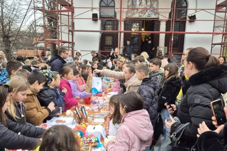 Sa zvončićima oko vrata, deca su stajala oko štandova na kojima su izložili svoje ručno pravljene proizvode, od kolača, preko brojanica do ukrasa. Mnogobrojnim posetiocima tako su preneli svoju radost povodom praznika2 – rekla nam je veroučiteljica Tamara Antić.